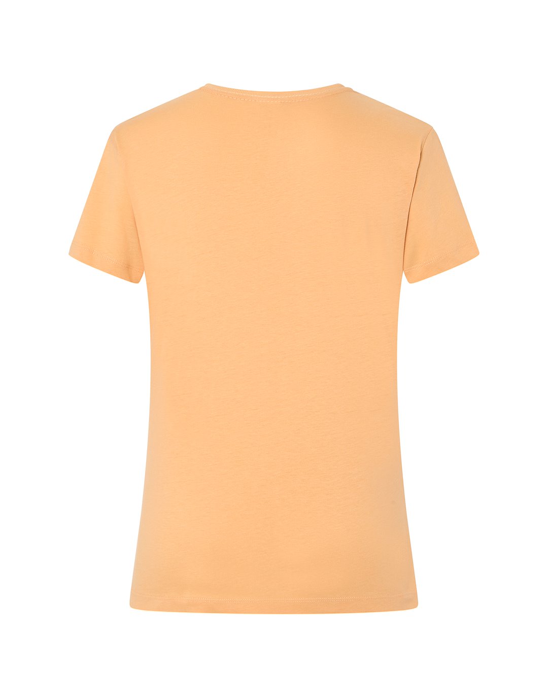 T-shirt damski z krótkim rękawem. Krój dopasowany do sylwetki. Ściągacz przy szyi. Szwy boczne. Podwójne szwy na ramionach i spodzie koszulki.  Łatwo usuwalna metka. 100 % bawełna.