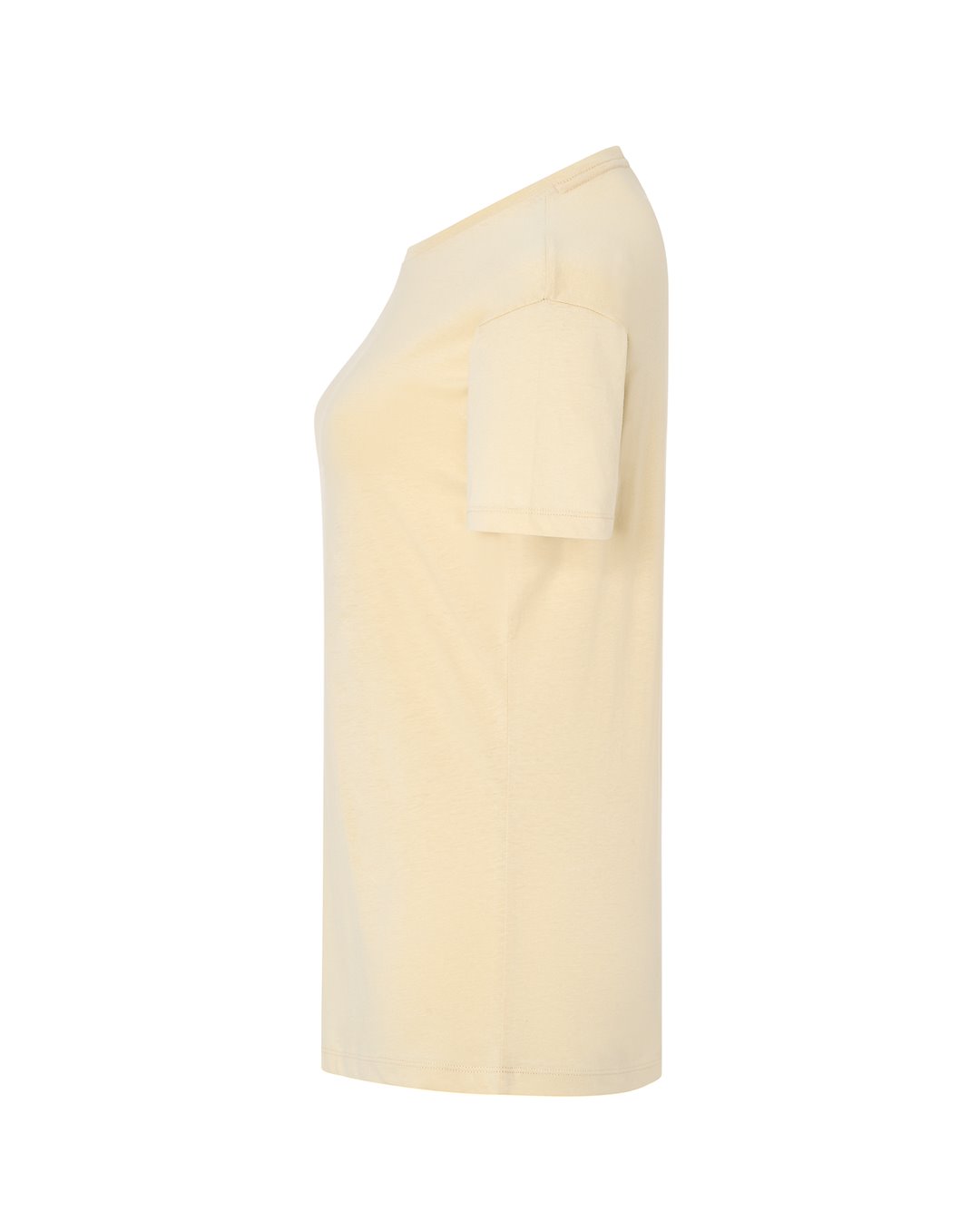 T-shirt damski z krótkim rękawem. Krój dopasowany do sylwetki. Ściągacz przy szyi. Szwy boczne. Podwójne szwy na ramionach i spodzie koszulki.  Łatwo usuwalna metka. 100 % bawełna.
