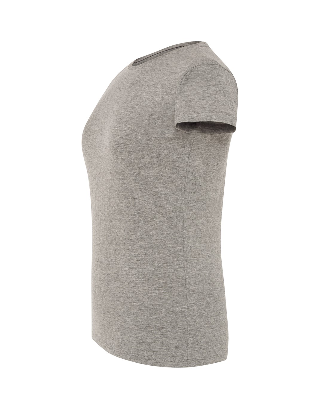 T-shirt damski z krótkim rękawem. Krój dopasowany do sylwetki. Ściągacz przy szyi. Szwy boczne. Podwójne szwy na ramionach i spodzie koszulki.  Łatwo usuwalna metka. 100 % bawełna.