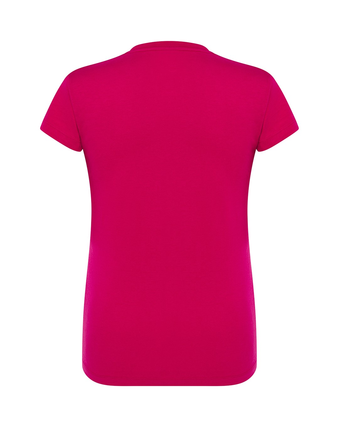 T-shirt damski z krótkim rękawem. Krój dopasowany do sylwetki. Ściągacz przy szyi. Szwy boczne. Podwójne szwy na ramionach i spodzie koszulki.  Łatwo usuwalna metka. 100 % bawełna.