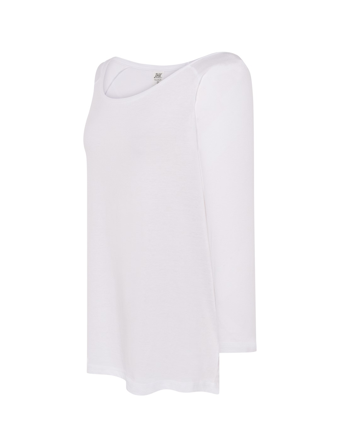 Bluzka damska z rękawkami 3/4 typu reglan. Szeroki, okrągły dekotl. Single jersey.