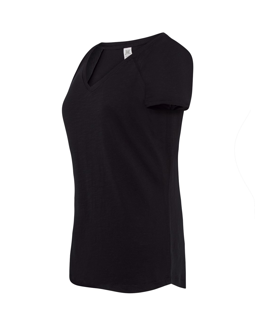 Damski Tshirt z rękawkami typu reglan. Single jersey, rękawki zawinięte. Modny niski ściągacz typu V-Neck. 100% bawełna.
