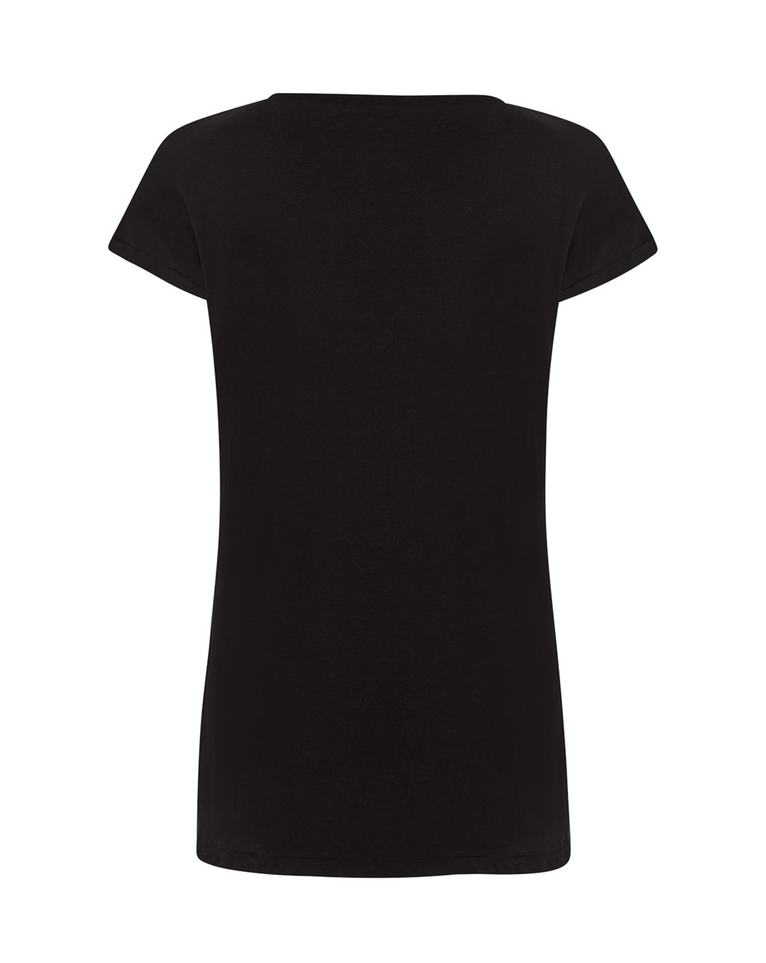 Bluzka damska z krótkim rękawem. Single jersey. Rękawy obszyte, szeroki okrągły dekolt.