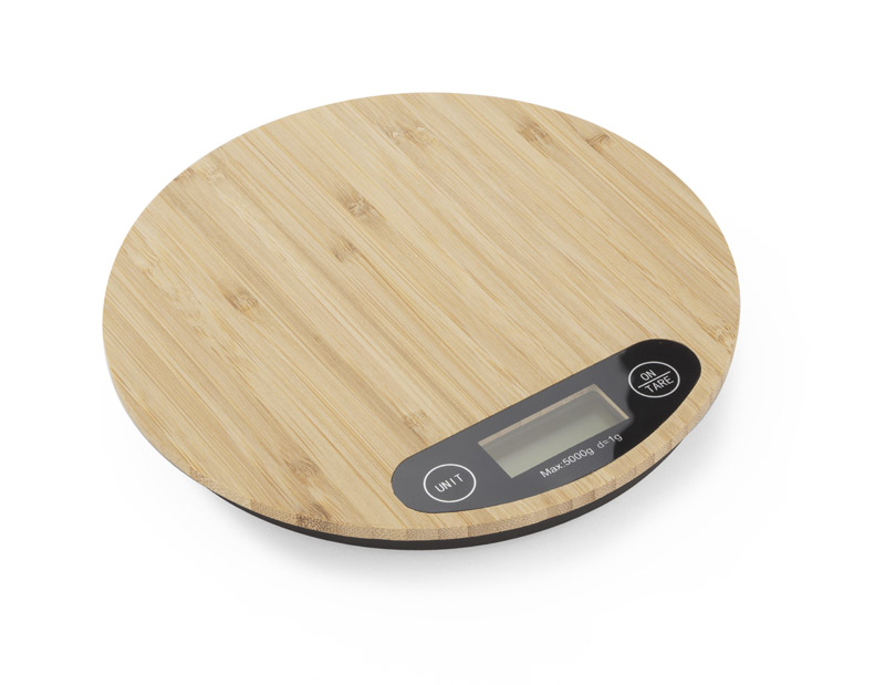 Elektroniczna waga kuchenna CIRCA wykończona naturalnym bambusem.