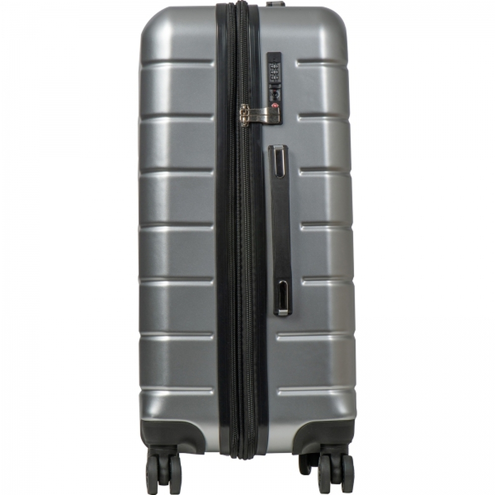 Dzięki zastosowaniu mocnego i trwałego materiału z tworzywa sztucznego, walizka sprawdzi się idealnie podczas każdej podróży. Poza teleskopową rączką posiada również dwa uchwyty ręczne, umożliwiające szybki transport w pionie lub w poziomie.Cechy ogólne:Wymiary: 38 x 24 x 57 cm.Rozmiar: 24 calle.Wykonana z trwałego tworzywa ABS.