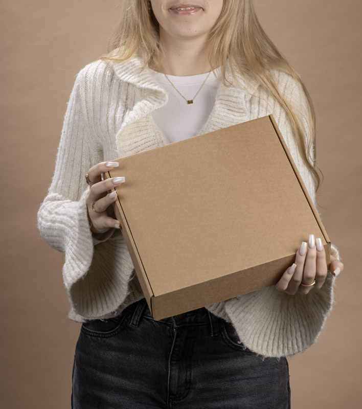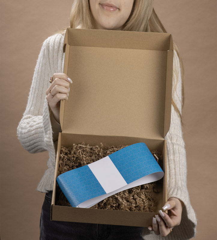 Zestaw do pakowania AZUL „S” to gotowe i estetyczne rozwiązanie do tworzenia firmowych upominków. W jego skład wchodzi solidne pudełko z tektury typu kraft, papierowy wypełniacz w dopasowanym beżowym kolorze (z atestem do kontaktu z żywnością) oraz niebieska owijka ze srebrnym, autorskim wzorem stworzonym dla BLUE COLLECTION. Owijka zapewnia eleganckie wykończenie i łatwe użytkowanie dzięki paskowi samoprzylepnemu. Zestaw występuje w trzech rozmiarach (S, M, L)– bez trudu dopasujesz je do planowanej zawartości.