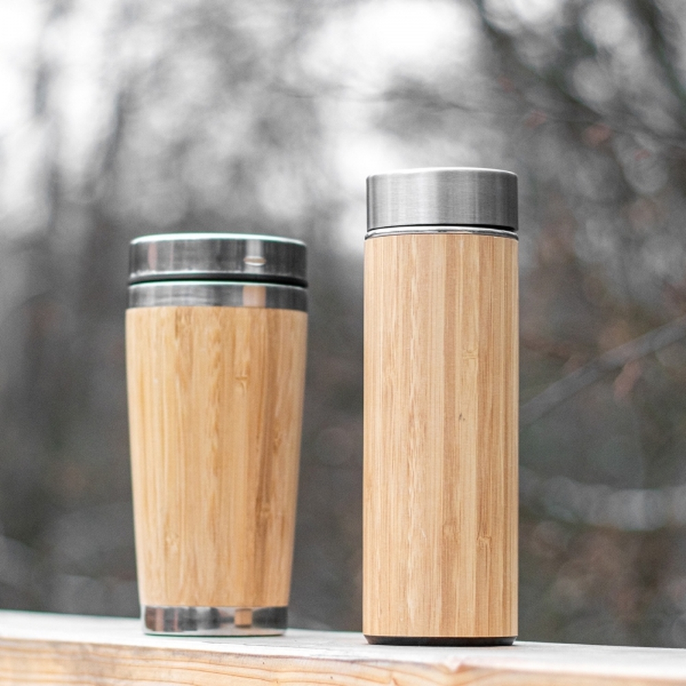 Zestaw kubek termiczny 360 ml i butelka termiczna 450 ml to eleganckie i funkcjonalne akcesoria, które idealnie sprawdzą się w codziennym życiu, jak i podczas podróży. Wykonane z najwyższej jakości materiałów, łączą w sobie nowoczesny design z dbałością o środowisko, oferując niezawodność i wygodę użytkowania przez wiele godzin.Butelka termiczna o pojemności 450 ml została stworzona z myślą o osobach, które cenią zdrowy tryb życia i dbają o szczegóły. Wykonana z trwałej stali nierdzewnej, a jej obudowa z naturalnego bambusa nadaje jej elegancki, ekologiczny wygląd.