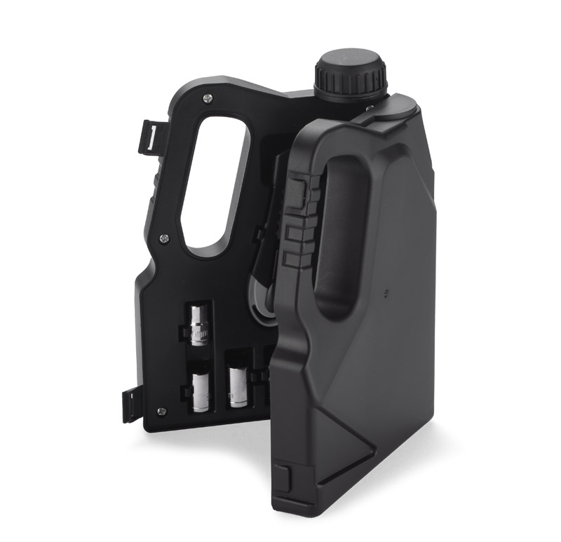 KANNIS to zestaw, w którym znajduje się wiele przydatnych narzędzi: cztery śrubokręty precyzyjne, nożyk do tapet, zwijana miara, uchwyt, cztery klucze nasadkowe z przejściówką i dziewięć bitów. Wszystko razem zamknięte jest w charakterystyczne etui w kształcie kanistra.
