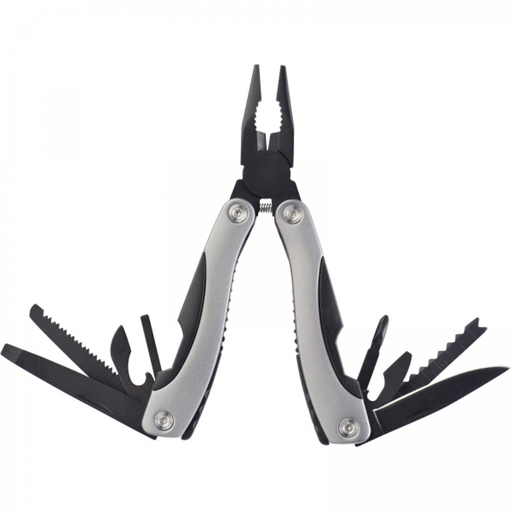 Latarka jest zasilana bateriami, które zostały dołączone do zestawu, co oznacza, że jest gotowa do użycia od razu po rozpakowaniu. Doskonale sprawdzi się w sytuacjach wymagających dodatkowego źródła światła, takich jak naprawy, kemping, czy też prace w słabym oświetleniu.Wielofunkcyjne narzędzie to kolejny element zestawu, który łączy w sobie wiele funkcji, co czyni go niezastąpionym w różnych sytuacjach. Narzędzie to wyposażone jest w obcęgi, pilniki, śrubokręty, piłkę, nóż oraz otwieracz, co sprawia, że jest wszechstronnym urządzeniem, które może być używane do napraw, majsterkowania, czy też otwierania butelek.