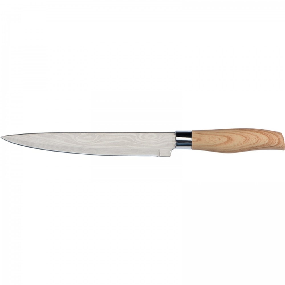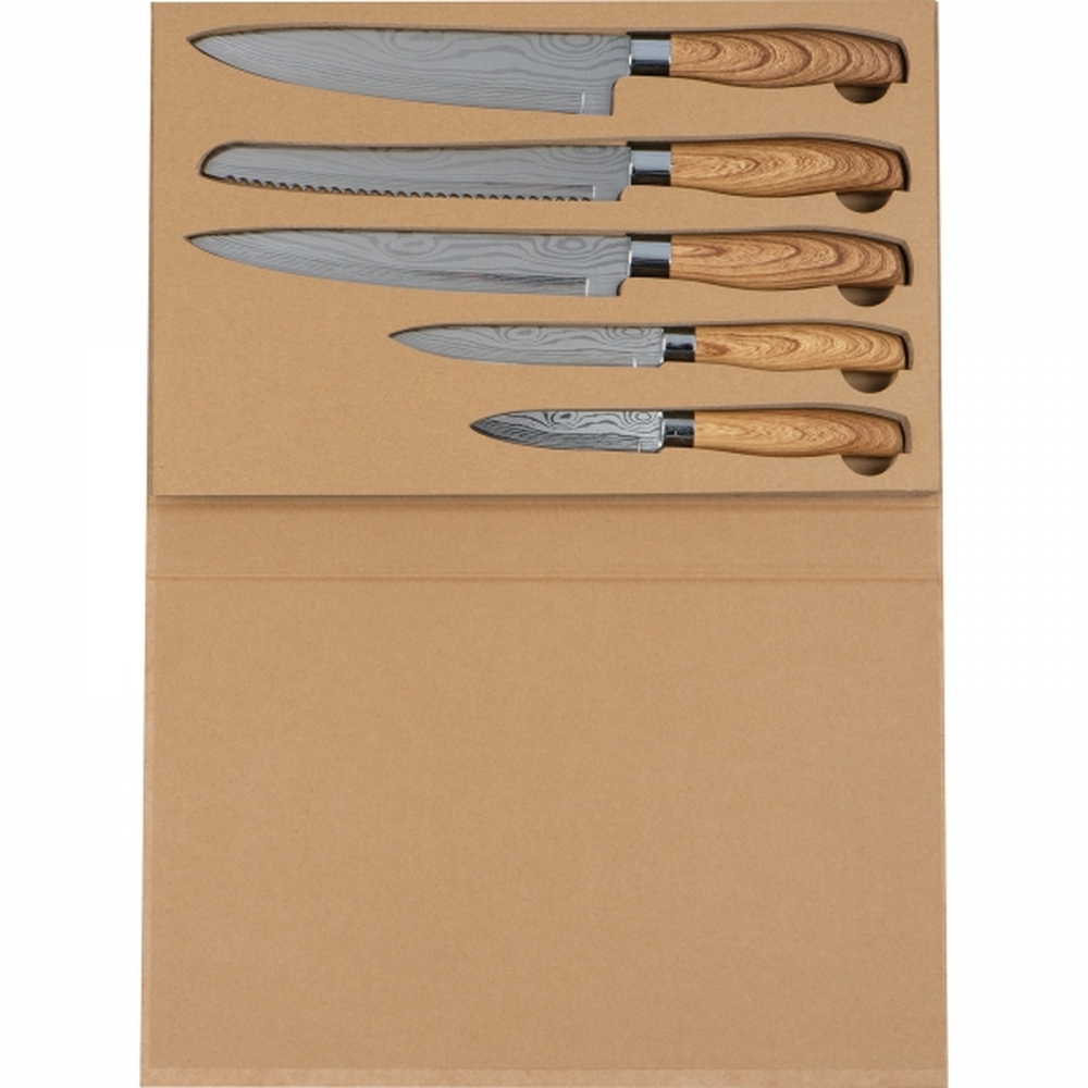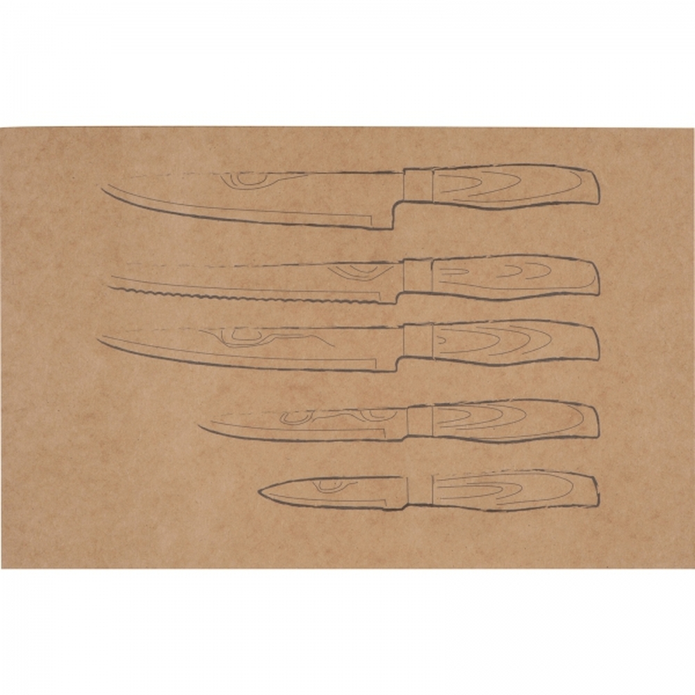 Zestaw noży kuchennych to wyjątkowa kolekcja pięciu noży o różnych rozmiarach, które stanowią niezbędne narzędzie w każdej kuchni. Wykonane z wysokiej jakości stali nierdzewnej, noże te zapewniają nie tylko wyjątkową trwałość, ale również precyzyjne cięcie, które ułatwia codzienne przygotowywanie posiłków. Stal nierdzewna gwarantuje odporność na korozję i łatwość w utrzymaniu noży w czystości, co sprawia, że są one higieniczne i bezpieczne w kontakcie z żywnością.Każdy nóż w zestawie wyposażony jest w ergonomiczny uchwyt z tworzywa imitującego drewno.Zestaw noży kuchennych jest idealnym rozwiązaniem zarówno dla amatorów gotowania, jak i profesjonalistów.
