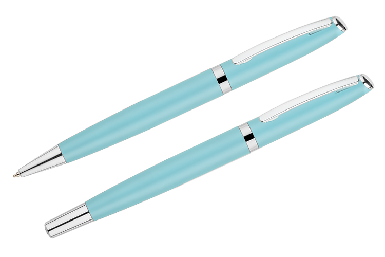 Zestaw piśmienniczy COLORADO składa się z długopisu oraz pióra kulkowego zapakowanych w kartonik dopasowany kolorystycznie do zestawu. Przybory piśmiennicze wykonane z metalu, etui z mocnej tektury wykończonej kolorowym papierem. Jego cechą charakterystyczną są soczyste, modne kolory. Długopis z mechanizmem typu twist. Wkład pióra i długopisu w kolorze niebieskim.