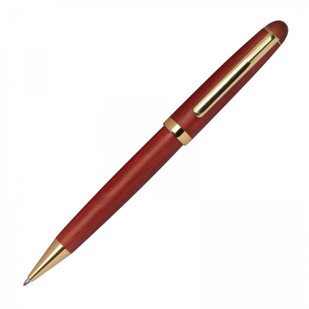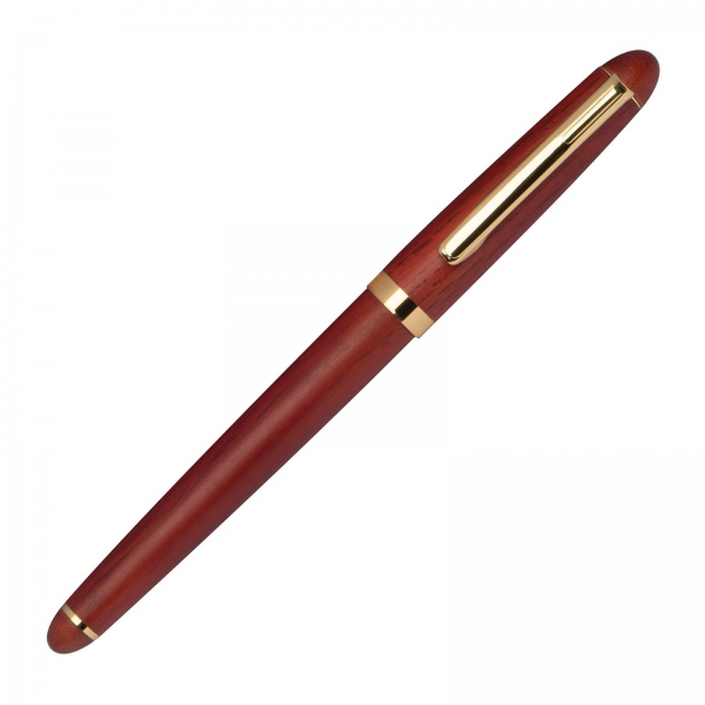 Elegancki zestaw piśmienny, który łączy klasykę z funkcjonalnością. W jego skład wchodzi stylowy długopis z niebieskim wkładem oraz pióro wieczne z dołączonym nabojem w tym samym kolorze. Każdy element wykonano z dbałością o detale, zapewniając przyjemność i komfort pisania – niezależnie od tego, czy notujesz codzienne sprawy czy podpisujesz ważne dokumenty.Całość zamknięta jest w eleganckim, drewnianym etui wykonanym z drewna różanego.
