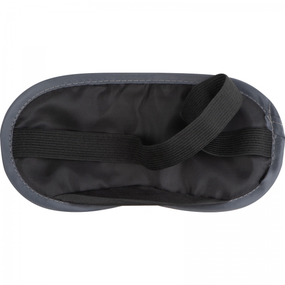Zestaw z poliestru zawiera nadmuchiwaną poduszkę na szyję, zatyczki do uszu i opaskę na oczy oraz woreczek.