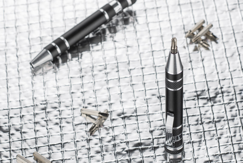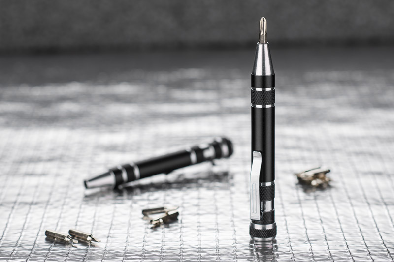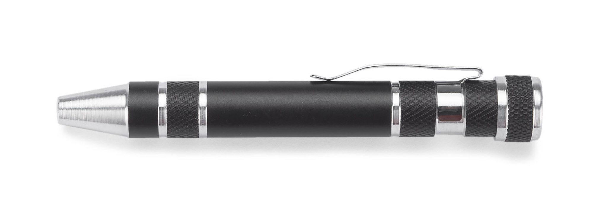 Komplet śrubokrętów zawiera 8 różnych końcówek. Klip umożliwia przymocowanie do kieszeni dzięki czemu zapobiegnie przypadkowemu zgubieniu. Końcówki śrubkrętów mocowane za pomocą magnesu.